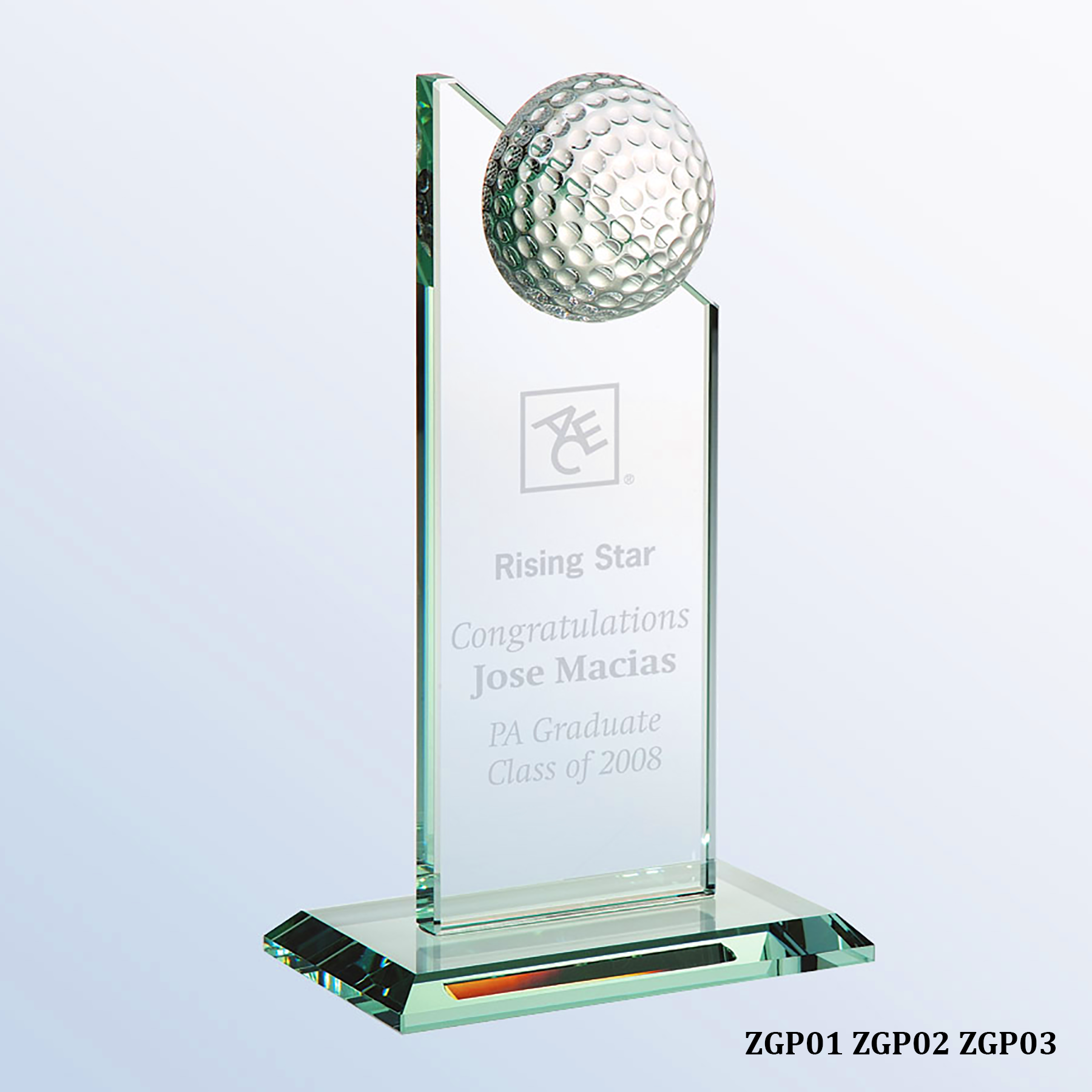 (ZGPG01) (ZGPG02) (ZGPG03) Jade Glass Golf Pinnacle Award Series Golf AwardsPinnacleJade Jan 4 Written By Rebecca Grace Please specify item number when ordering:Small (ZGPG01)5"W x 6-1/2"H1.8 lbs.(1)$72.66 (24)$64.66 (72)$62.66 (144+)$61.66 (4c)Max Etch 3"x4"Medium (ZGPG02)5"W x 8-1/2"H2.3 lbs.(1)$81.64 (24)$72.31 (72)$69.98 (144+)$68.81 (4c)Max Etch 3"x5-1/2"Large (ZGPG03)5"W x 10-1/2"H2.6 lbs.(1)$91.29 (24)$81.29 (72)$78.79 (144+)$77.54 (4c)Max Etch 3"x7"- Attached Half Golf Ball CLICK HERE FOR UPCHARGES INCLUDED WITH EACH ORDER: Gift Box Included See More Golf Awards Glass Rebecca Grace Rebecca Grace is a Squarespace CSS Expert and Website Designer. https://rebeccagracedesigns.com